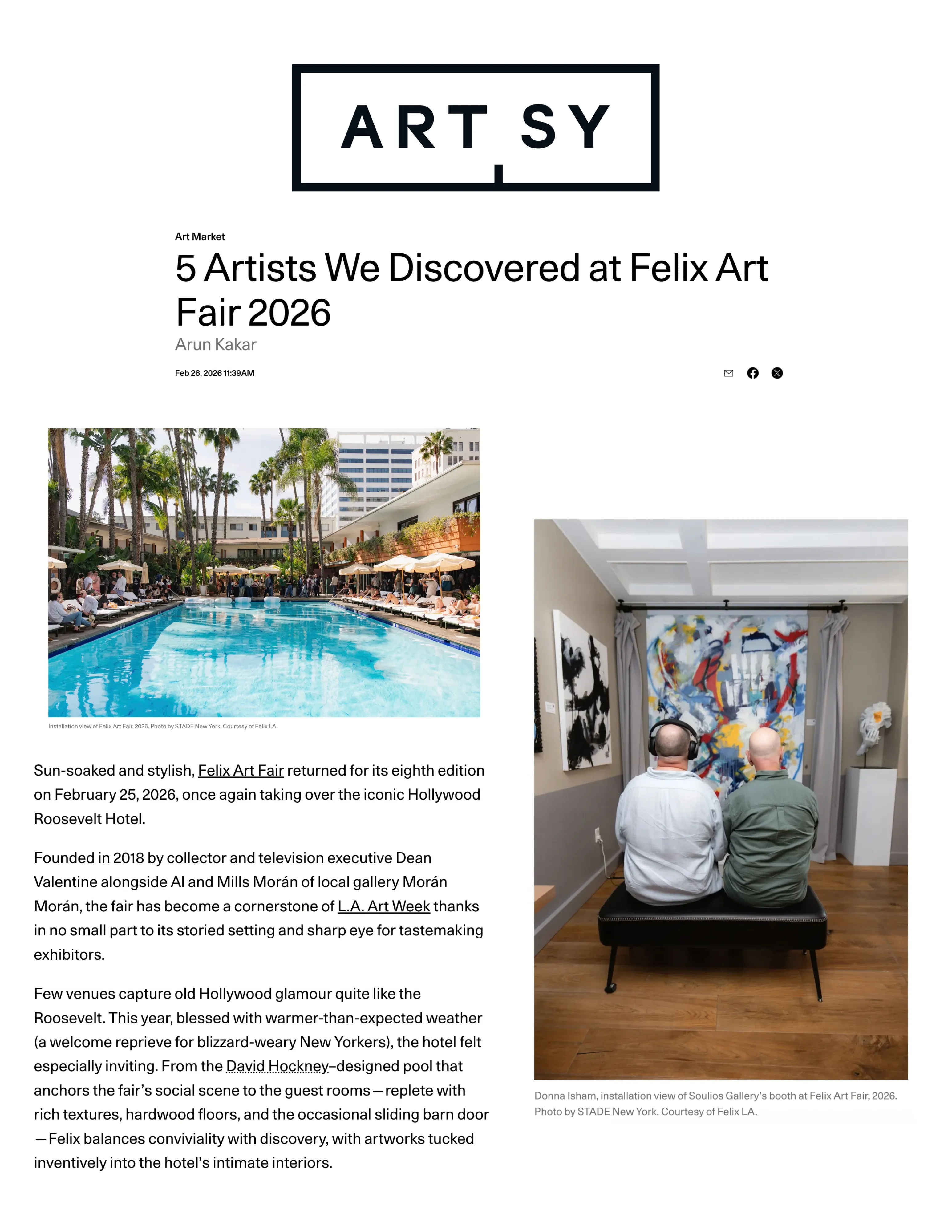 Donna Isham, installation view of Soulios Gallery’s booth at Felix Art Fair, 2026. Photo by STADE New York. Courtesy of Felix LA.